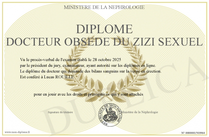 Envoyez par email votre Diplôme docteur obsédé du zizi sexuel personalisé