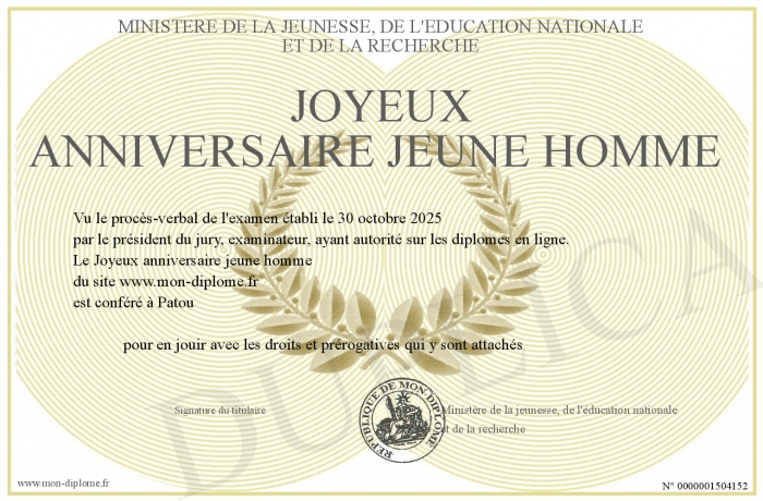 Envoyez par email votre Joyeux anniversaire jeune homme personalisé