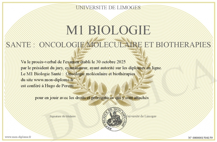 Envoyez par email votre M1 Biologie Santé : Oncologie moléculaire et biothérapies personalisé