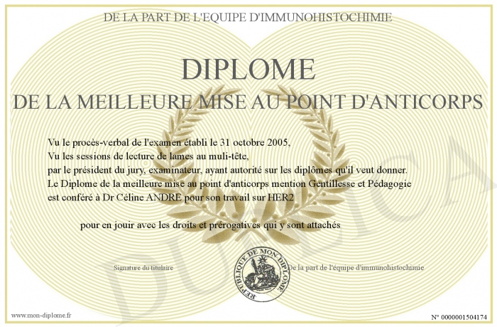 Envoyez par email votre Diplôme de la meilleure mise au point d'anticorps personalisé