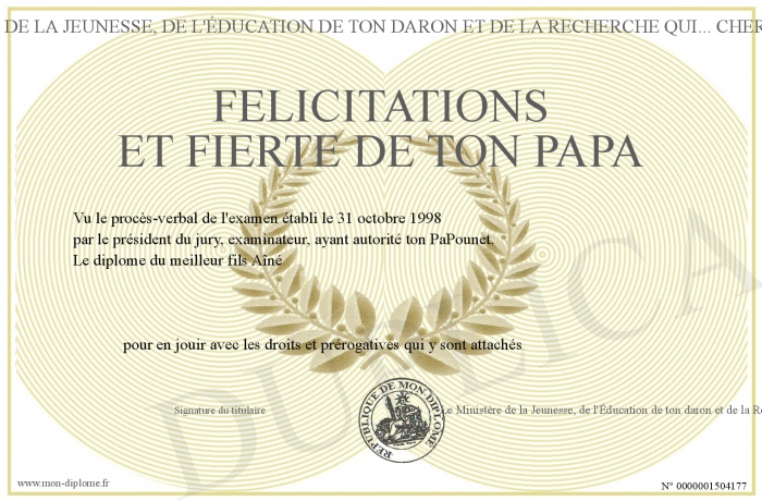 Envoyez par email votre Felicitations et fierte de ton papa personalisé