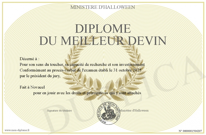 Envoyez par email votre Diplôme du meilleur devin personalisé