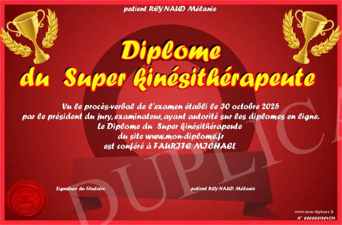 Envoyez par email votre Diplôme du Super kinésithérapeute personalisé