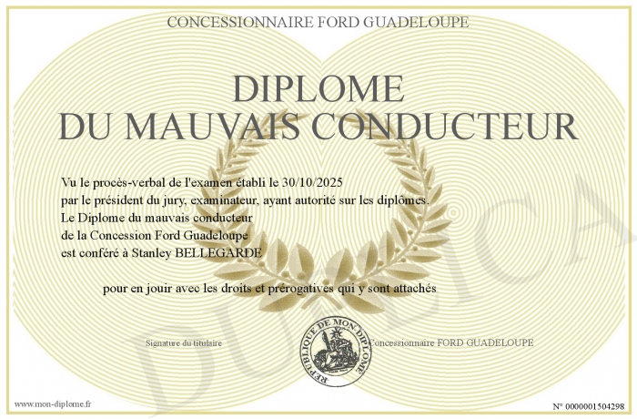 Envoyez par email votre Diplôme du mauvais conducteur personalisé