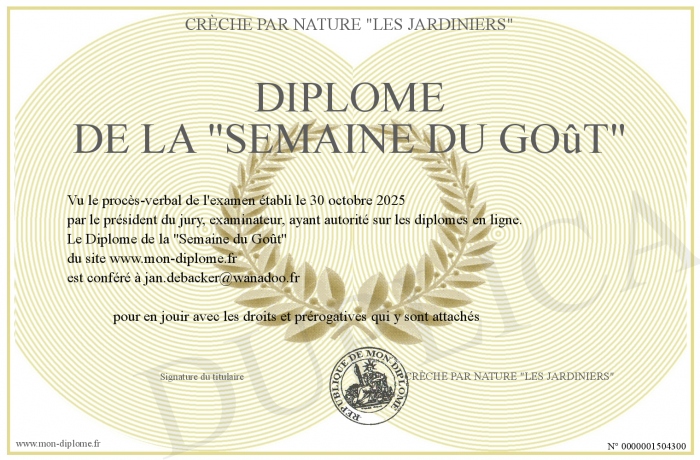 Envoyez par email votre Diplôme de la -Semaine du Goût- personalisé