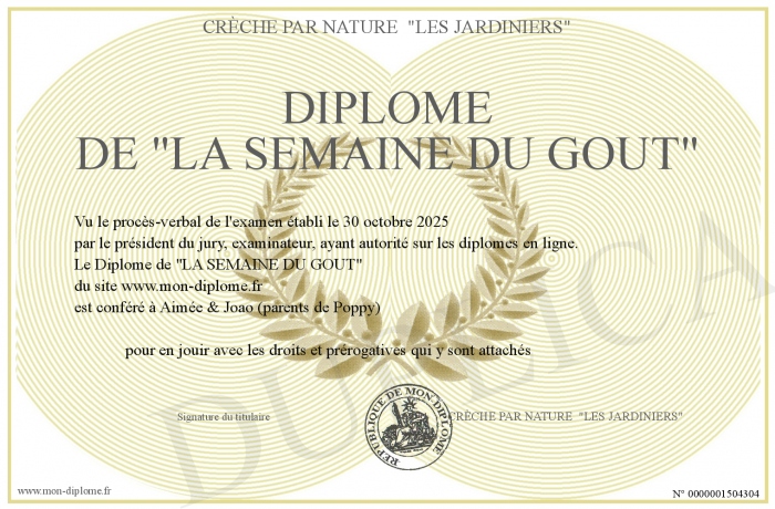 Envoyez par email votre Diplôme de -LA SEMAINE DU GOUT- personalisé