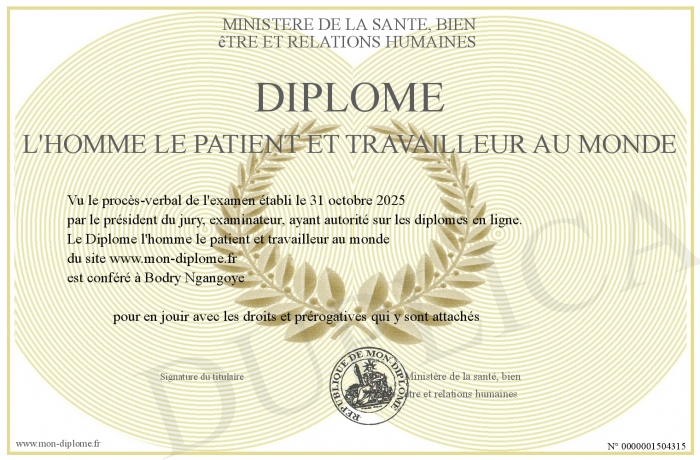 Envoyez par email votre Diplôme l'homme le patient et travailleur au monde personalisé