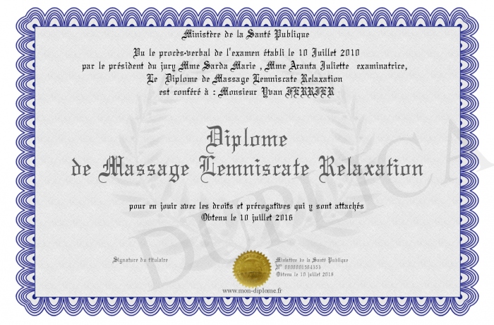 • Diplôme de Massage Lemniscate Relaxation