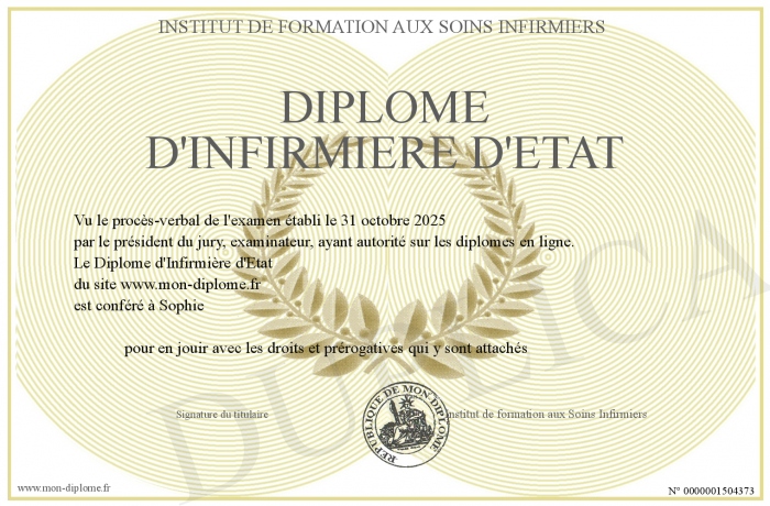 Envoyez par email votre Diplôme d'Infirmière d'Etat personalisé