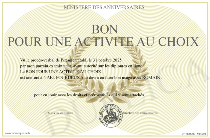 Envoyez par email votre BON POUR UNE ACTIVITE AU CHOIX personalisé