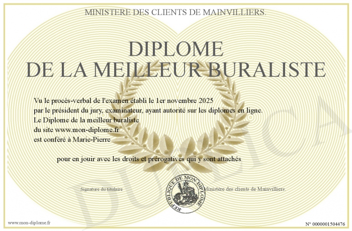 Envoyez par email votre Diplôme de la meilleur buraliste personalisé