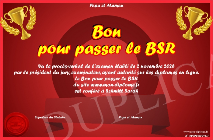 Envoyez par email votre Bon pour passer le BSR personalisé