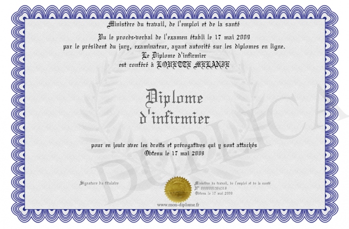 Envoyez par email votre Diplome d'infirmier personalisé