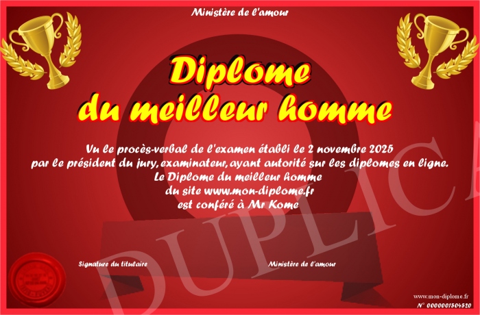 Envoyez par email votre Diplôme du meilleur homme personalisé