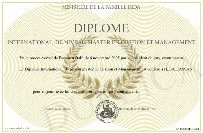 Envoyez par email votre Diplôme International de niveau master en Gestion et Management personalisé