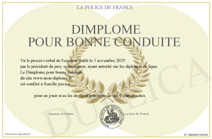 Envoyez par email votre Dimplome pour bonne conduite personalisé