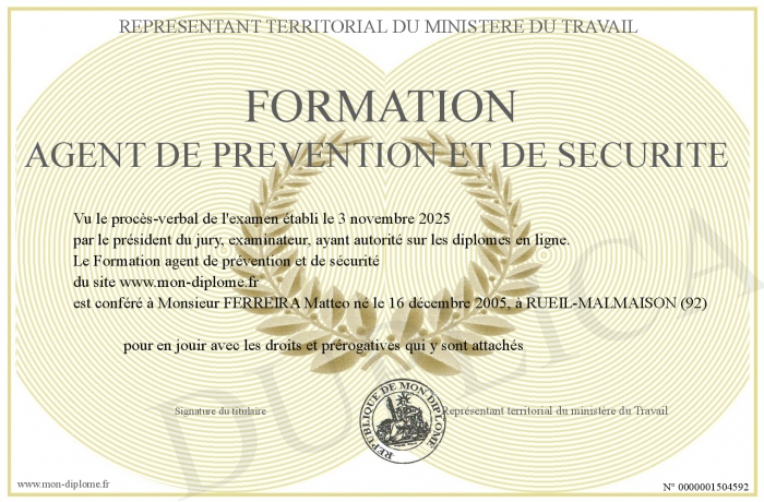 Envoyez par email votre Formation agent de prévention et de sécurité personalisé