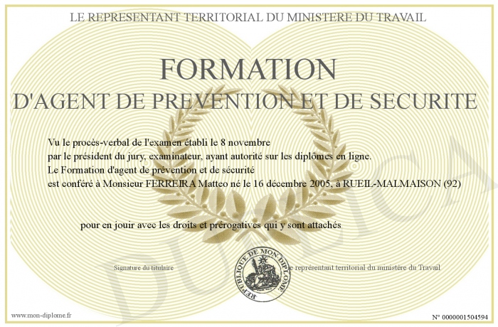 Envoyez par email votre Formation d'agent de prévention et de sécurité personalisé