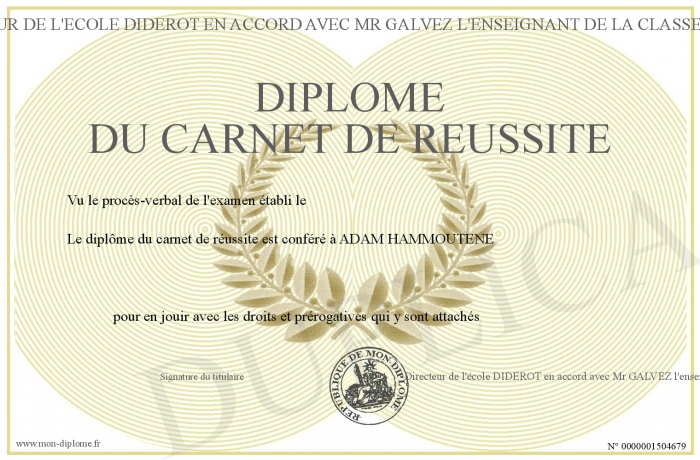 Envoyez par email votre Diplôme du carnet de réussite personalisé