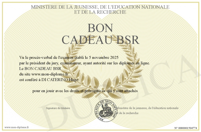 Envoyez par email votre BON CADEAU BSR personalisé