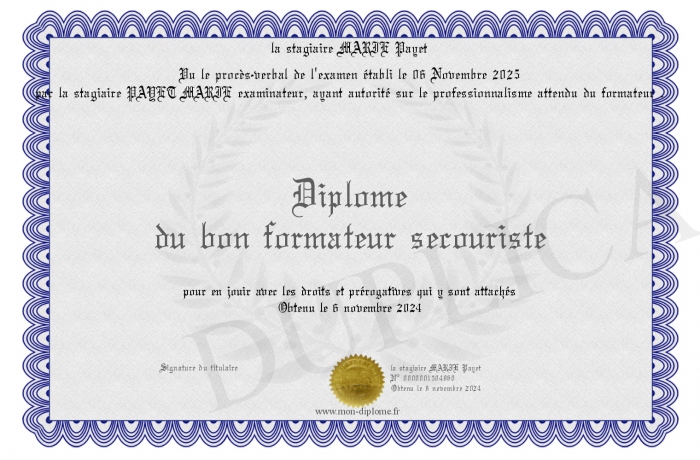 Envoyez par email votre Diplôme du bon formateur secouriste personalisé