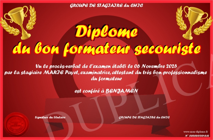 Envoyez par email votre Diplôme du bon formateur secouriste personalisé