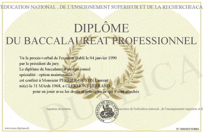 Envoyez par email votre DiplÔme du baccalaureat professionnel personalisé