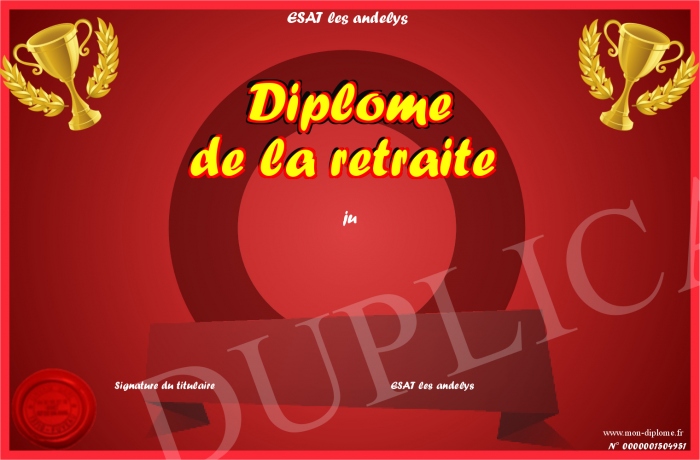 Envoyez par email votre Diplôme de la retraite personalisé