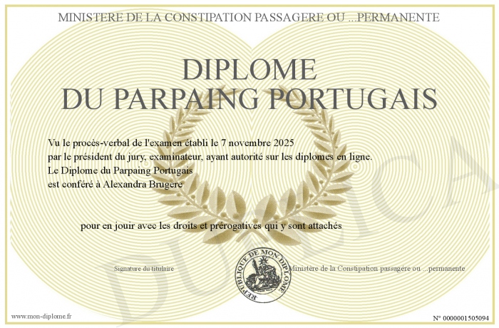 Envoyez par email votre Diplôme du Parpaing Portugais personalisé