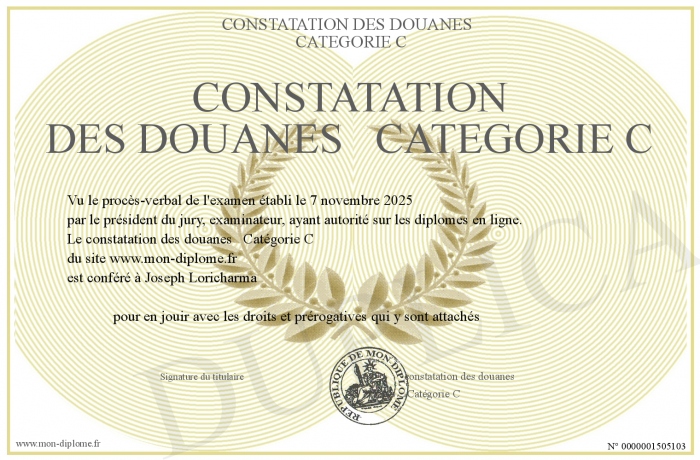 Envoyez par email votre constatation des douanes Catégorie C personalisé