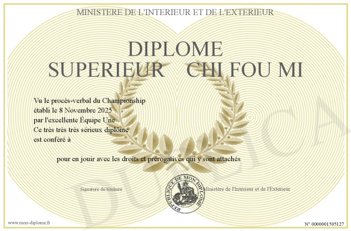 Envoyez par email votre Diplôme Supérieur Chi Fou Mi personalisé
