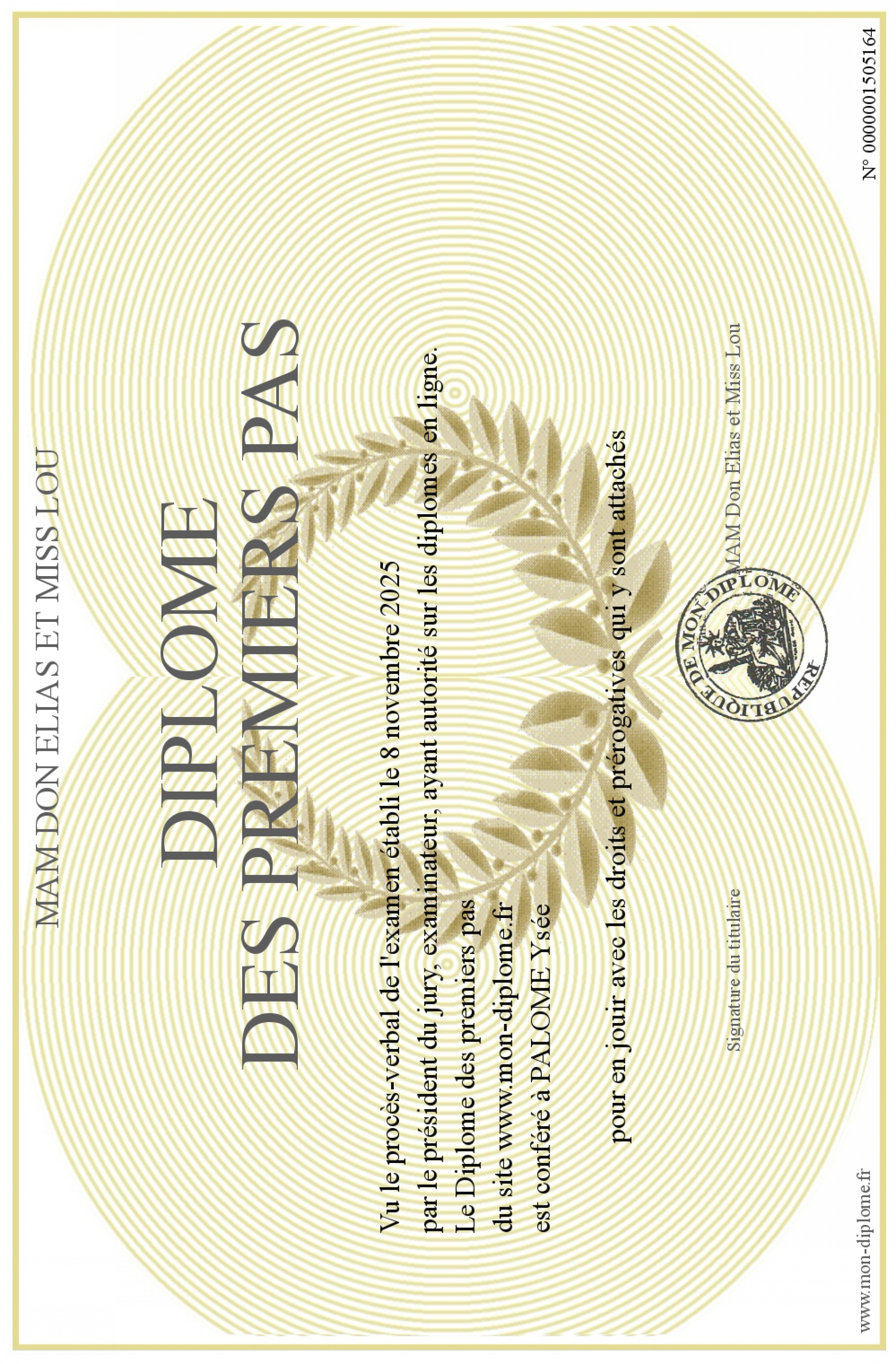 Envoyez par email votre Diplôme des premiers pas personalisé
