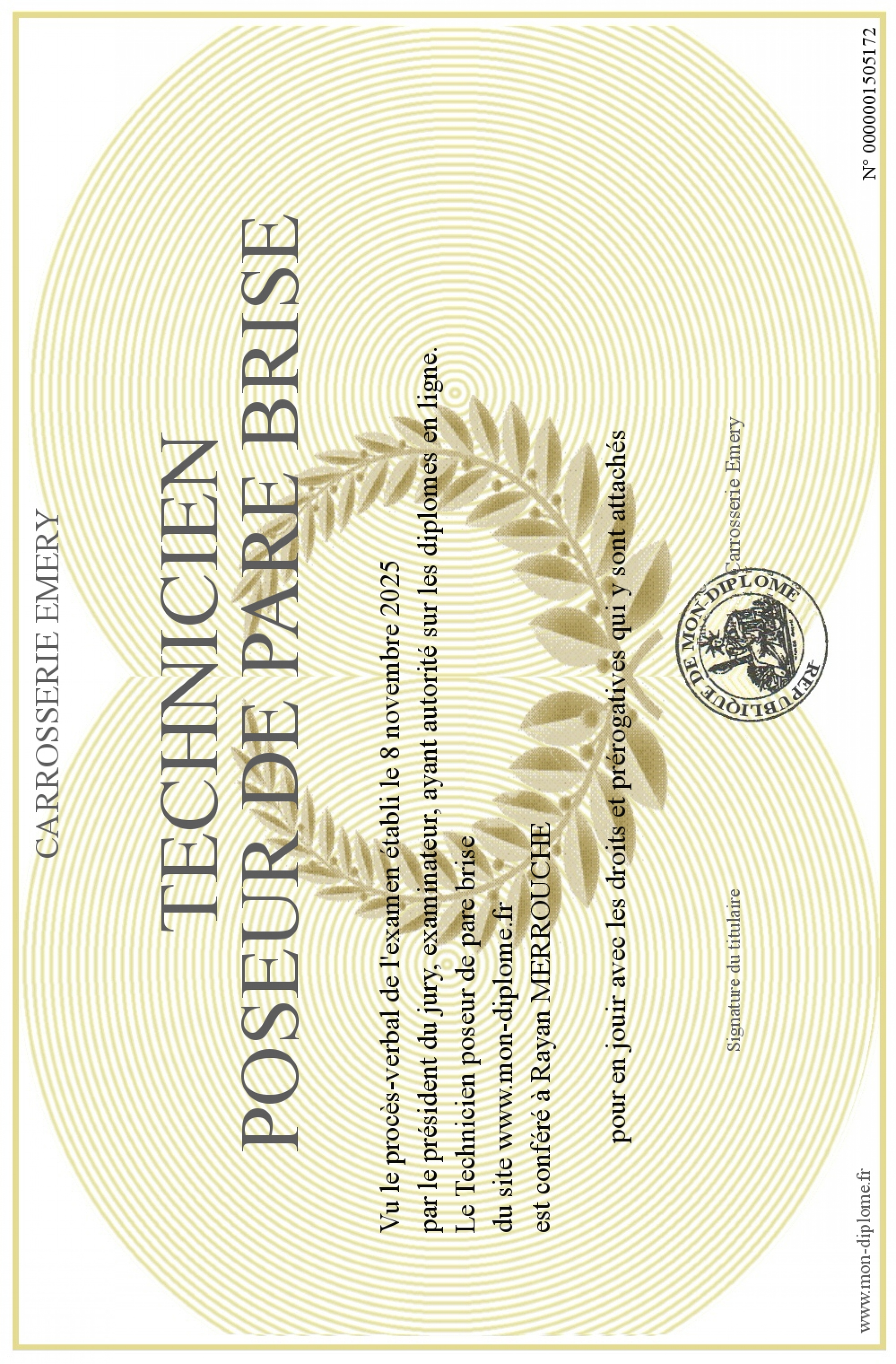 Envoyez par email votre Technicien poseur de pare brise personalisé