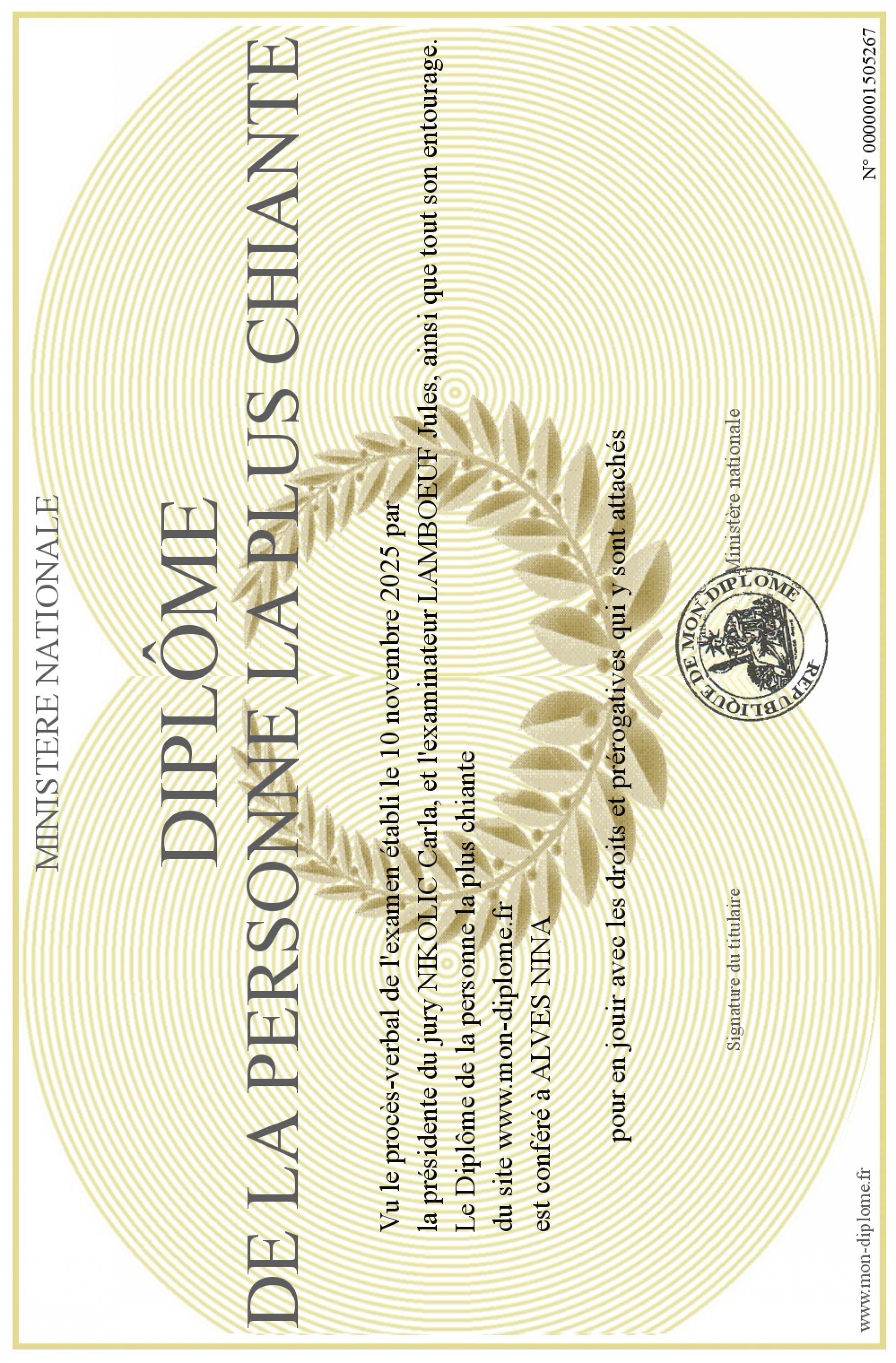 Envoyez par email votre DiplÔme de la personne la plus chiante personalisé