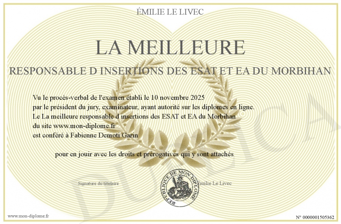 Envoyez par email votre La meilleure responsable d insertions des ESAT et EA du Morbihan personalisé
