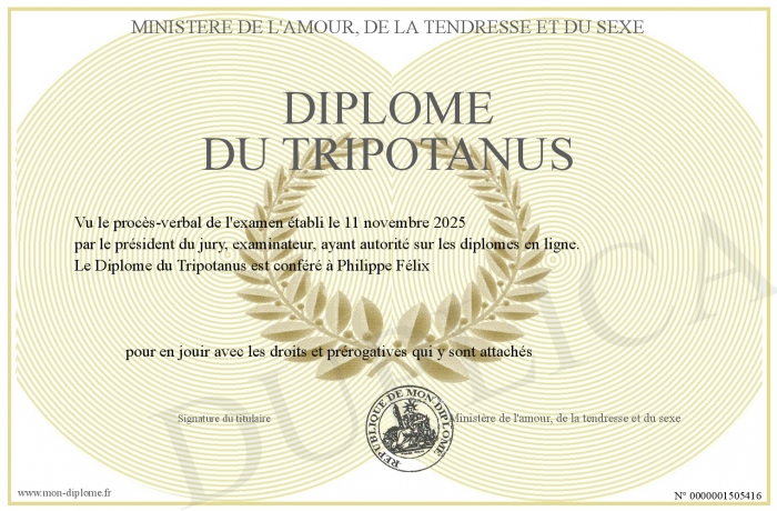 Envoyez par email votre Diplôme du Tripotanus personalisé