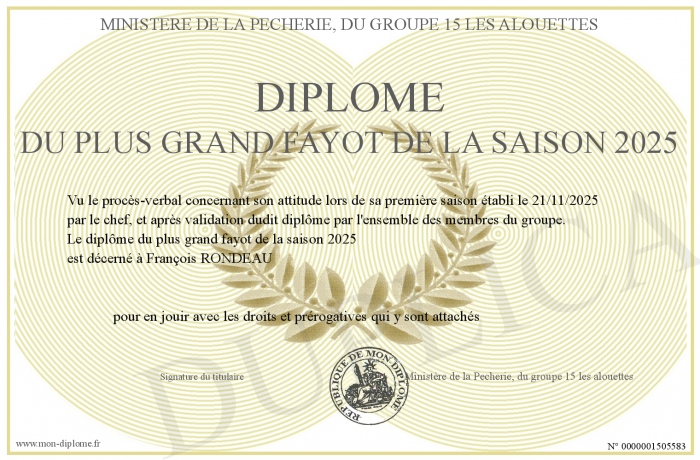 Envoyez par email votre Diplôme du plus grand fayot de la saison 2025 personalisé