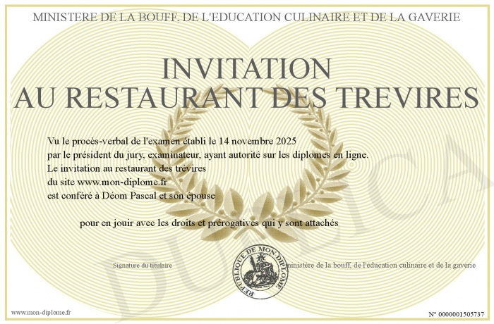 Envoyez par email votre invitation au restaurant des trévires personalisé