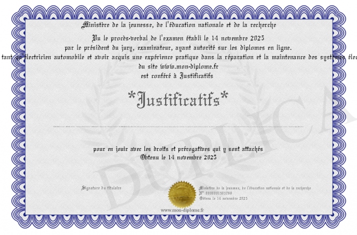 Envoyez par email votre *Justificatifs* *ATTENTION de travail* : OBTENU EN 2017 *Certificat de Sécurité Excellence* : OBTENU LE 23 Novembre 2024 *Attestation d'expérience* JE SOUSSIGNÉ Yagha Makane Seck, atteste avoir travaillé en tant qu'électricien automobile et avoir acquis une expérience pratique dans la réparation et la maintenance des systèmes électriques des véhicules. Je possède un certificat de travail obtenu en 2017 et un certificat de Sécurité Excellence obtenu le 23 novembre 2024, qui démontrent mes compétences et mon expérience dans le domaine. Cordialement, Yagha Makane Seck personalisé