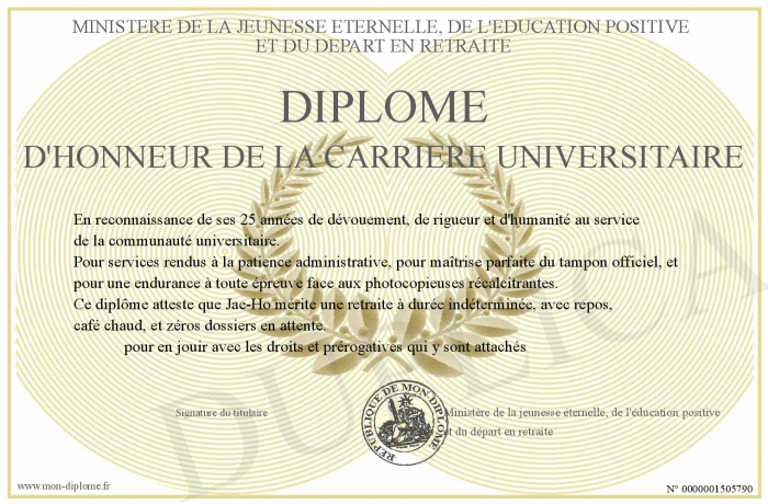 envoyé par le Ministère de la jeunesse éternelle, de l'éducation positive -et du départ en retraite !