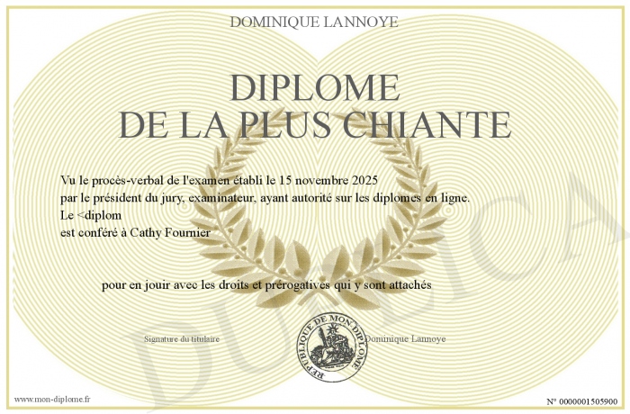 Envoyez par email votre Diplôme De la plus chiante personalisé