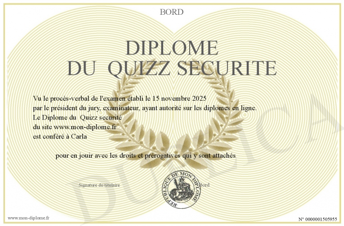 Envoyez par email votre Diplôme du Quizz securité personalisé