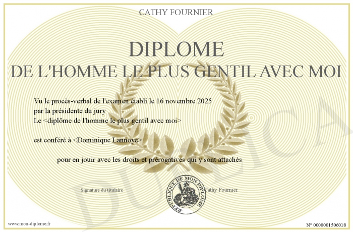 Envoyez par email votre Diplôme de l'homme le plus gentil avec moi personalisé