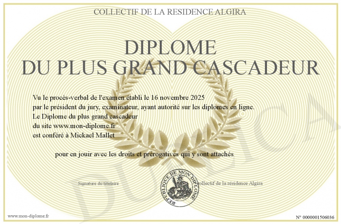 Envoyez par email votre Diplôme du plus grand cascadeur personalisé