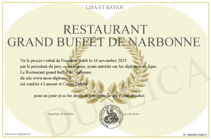 Envoyez par email votre Restaurant grand buffet de Narbonne personalisé