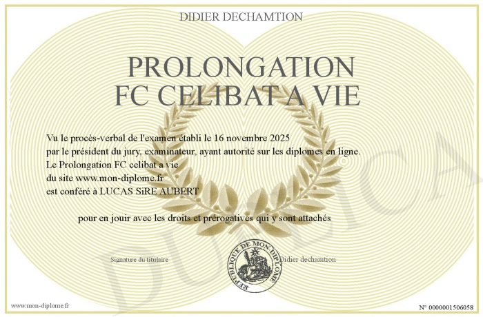 Envoyez par email votre Prolongation FC celibat a vie personalisé