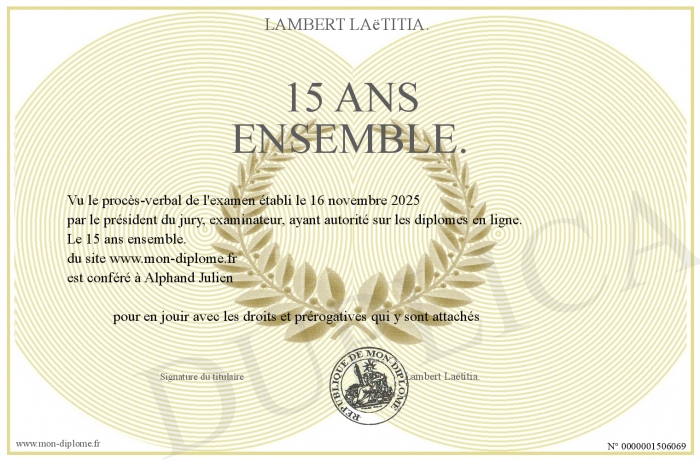 Envoyez par email votre 15 ans ensemble. personalisé