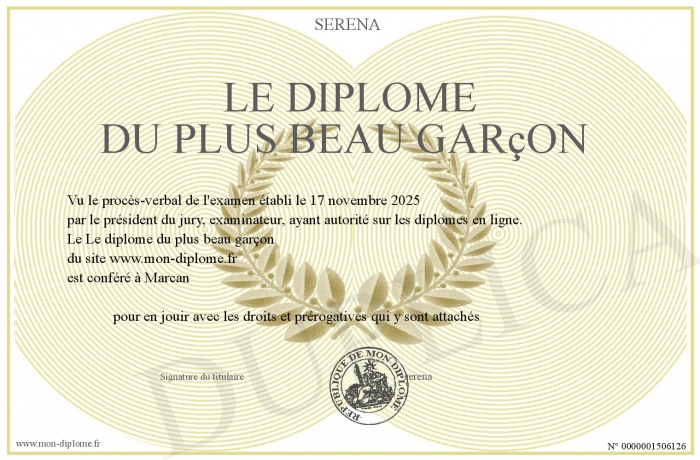 Envoyez par email votre Le diplôme du plus beau garçon personalisé
