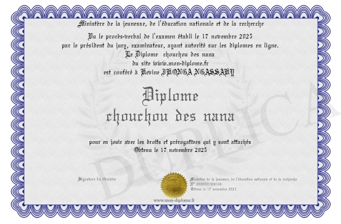 Envoyez par email votre Diplôme chouchou des nana personalisé