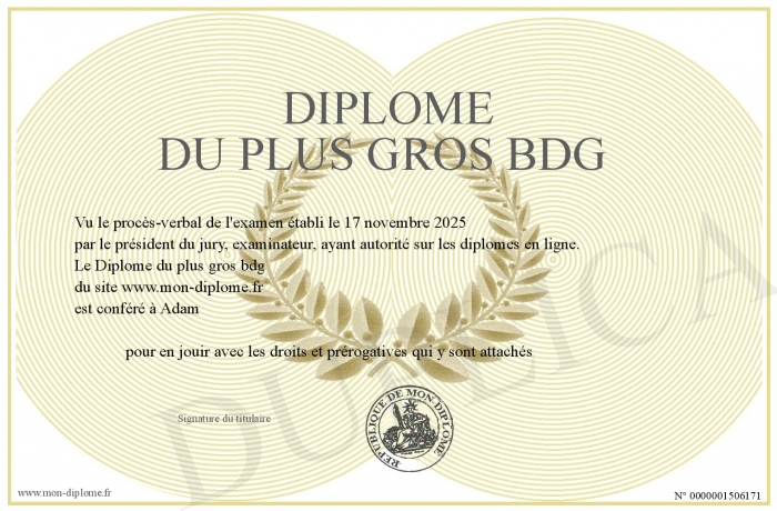 Envoyez par email votre Diplôme du plus gros bdg personalisé